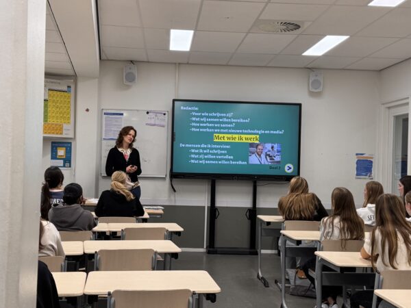 Docent Ans organiseert elk jaar de Dit Doe Ik-gastlessen. Ze geeft natuurkunde en NASK, en zet zich al jaren in om leerlingen te helpen bij hun profiel- en studiekeuze. “Kinderen van 14 of 15 moeten keuzes maken over hun toekomst, maar ze hebben vaak geen idee wat een beroep écht inhoudt,” vertelt ze.